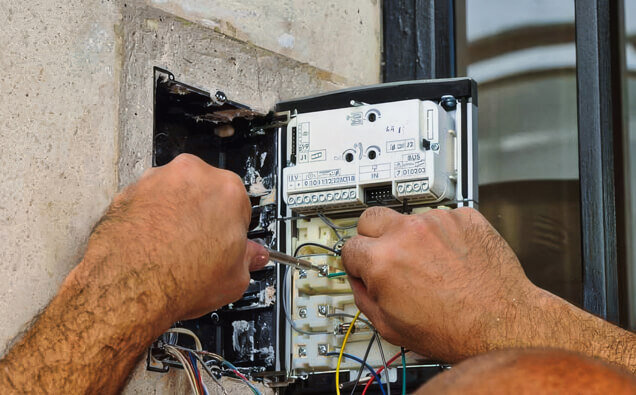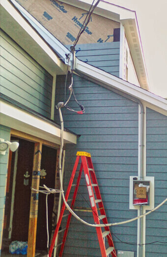 Rectification of aerial service lines with inadequate clearance, frayed insulation, unsafe attachments, or non-compliant service hardware.
